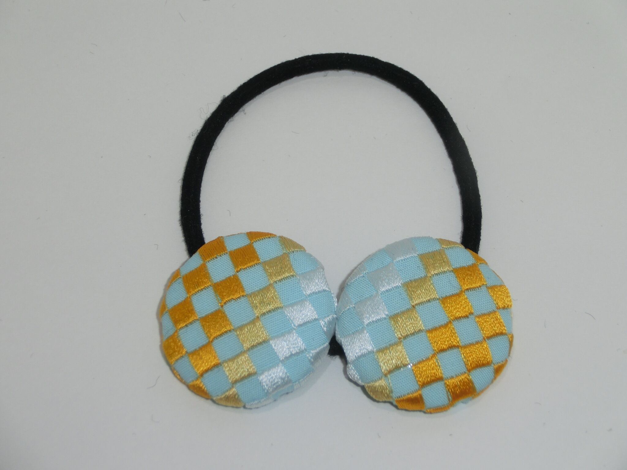 市松模様をグラデーションで刺繍したクルミボタンのヘアゴムです。(ダブル)